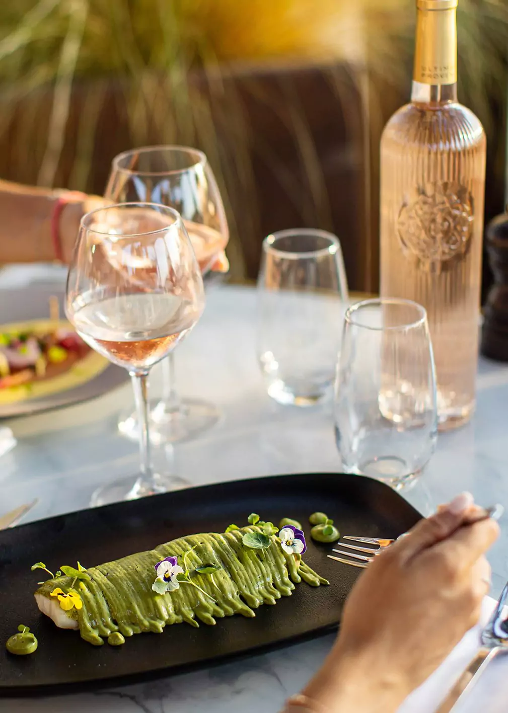 Un vino clásico de color rosa pálido provenzal con reflejos cobrizos y brillantes como las estrellas. Con aromas a pomelo, flores de diversos cítricos e intensos aromas florales. Es como caminar por un campo de lavanda en provenza en una mañana de principios de verano. Buen cuerpo y persistencia con una sorprendente textura y un grato final con tonos de bayas rojas, fresas, cerezas, hierbas frescas y un toque de hinojo.
